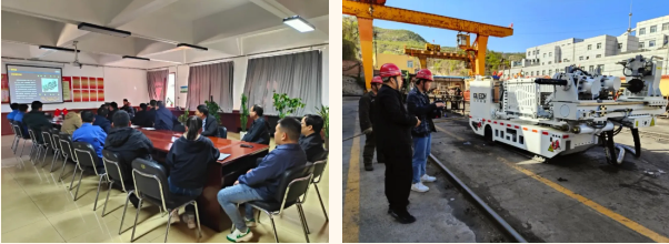 光力科技售后技術(shù)人員同客戶共同制定培訓(xùn)計(jì)劃,展開數(shù)字化智能鉆機(jī)專項(xiàng)培訓(xùn)。以“理論+實(shí)操”的授課方式,對(duì)ZYWL-6000Y數(shù)字化智能鉆機(jī)的運(yùn)行原理,內(nèi)部構(gòu)造,鉆進(jìn)、上卸鉆桿遙控系統(tǒng)控制等內(nèi)容進(jìn)行了全面展示和講解。通過 PPT模擬現(xiàn)場操作流程,對(duì)分解組裝設(shè)備時(shí)的注意事項(xiàng)、鉆進(jìn)參數(shù)、設(shè)備運(yùn)行參數(shù)的自動(dòng)采集、安全預(yù)警及系統(tǒng)故障提示功能、遠(yuǎn)程操作、設(shè)備維護(hù)保養(yǎng)知識(shí)等關(guān)鍵環(huán)節(jié)進(jìn)行了深度解析。進(jìn)一步對(duì)鉆機(jī)全自動(dòng)、半自動(dòng)控制及單步手動(dòng)控制操作進(jìn)行了示范演練,進(jìn)一步強(qiáng)化培訓(xùn)效果。目前數(shù)字化智能鉆機(jī)已正式投入井下使用。