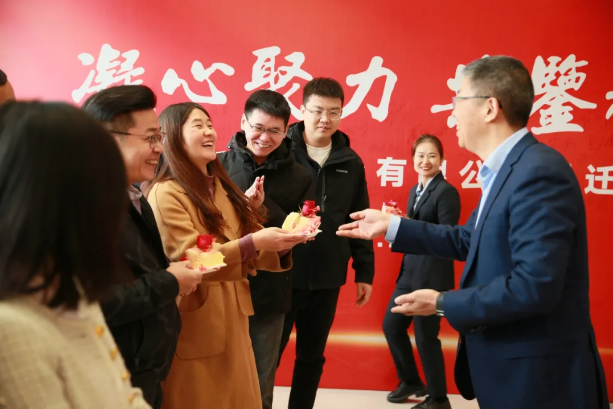 喬遷揭幕儀式中的切蛋糕環(huán)節(jié)將整個儀式推向高潮。蛋糕,預(yù)示著慶祝、圓滿、延續(xù)和成長,光力科技EMT管理團隊共同切下蛋糕,并將大蛋糕分切成小蛋糕,送給在場的員工們,與大家共享沉甸甸的果實。正所謂各美其美,美人之美,美美與共,天下大同,光力科技正在努力以“各美其美”的雙贏、多贏、共贏的理念來驅(qū)動“美美與共”的光力大同。公司上下齊心協(xié)力,一起做“大”蛋糕,未來一起分享更大的“蛋糕”!